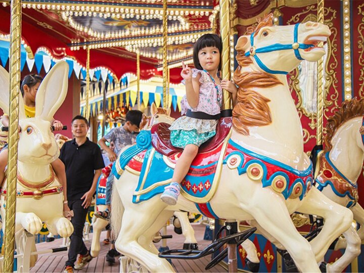 Trò chơi được thiết kế thành vòng quay kép để gia đình, bạn bè có thể đồng hành, trò chuyện cùng nhau trong suốt hành trình. Những chú ngựa gỗ được chạm khắc tinh xảo với nhiều màu sắc rực rỡ, di chuyển lên xuống theo nhịp điệu nhạc êm dịu tạo bầu không khí vui tươi.