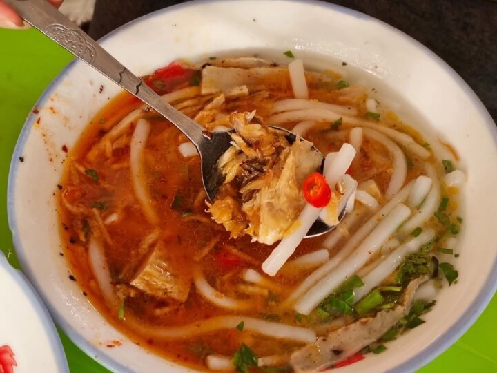 Điểm độc đáo của quán nằm ở việc sử dụng nước dùng từ cá biển tươi thay vì xương heo truyền thống. Các loại cá như cá hồng, cá ngừ được ninh cùng với xương để tạo nên nước dùng có vị ngọt thanh đặc trưng của biển cả. Sợi bánh canh tại đây mềm nhưng vẫn giữ được độ dai, thấm đẫm hương vị nước dùng từ cá.