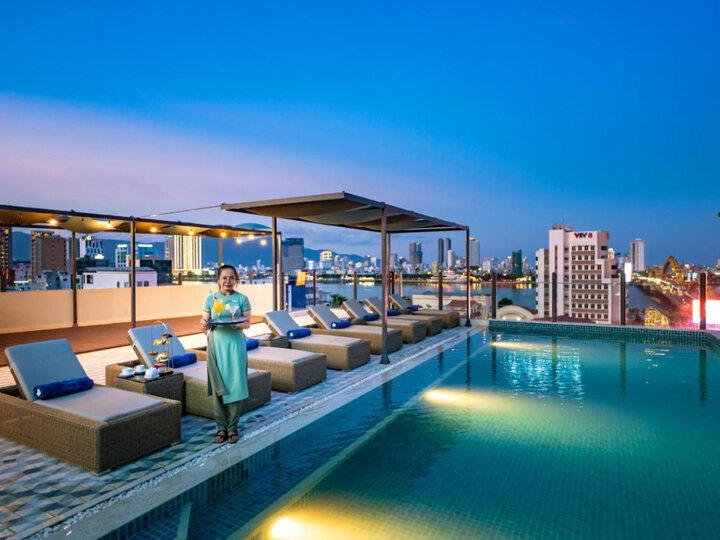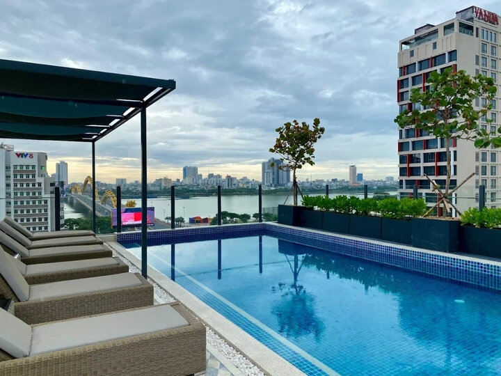 Bể bơi trên sân thượng chính là điểm nhấn độc đáo của khách sạn, cho phép du khách vừa bơi lội vừa ngắm nhìn toàn cảnh thành phố Đà Nẵng từ trên cao. Không gian này đặc biệt lý tưởng vào buổi hoàng hôn khi ánh sáng vàng óng chiếu xuống mặt nước, tạo nên khung cảnh thơ mộng và lãng mạn. Các phòng nghỉ được trang trí theo phong cách boutique hiện đại với các chi tiết nội thất được chọn lọc kỹ càng.