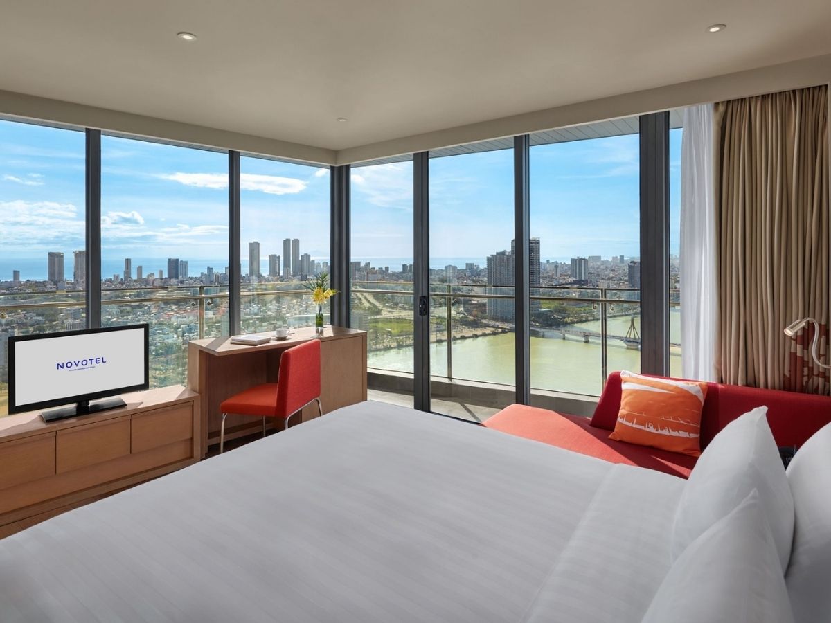 Novotel Danang Premier Han River sở hữu vị trí trung tâm bên sông Hàn, với tầm nhìn bao quát toàn cảnh thành phố. Các phòng nghỉ hiện đại, tiện nghi đầy đủ, gần trung tâm và các khu mua sắm lớn. Vị trí này giúp du khách dễ dàng khám phá Đà Nẵng trong dịp Tết, từ chợ Hàn đến cầu Rồng phun lửa. Để có mức giá tốt và lựa chọn phòng đẹp trong dịp cao điểm, nên ưu tiên đặt phòng sớm.