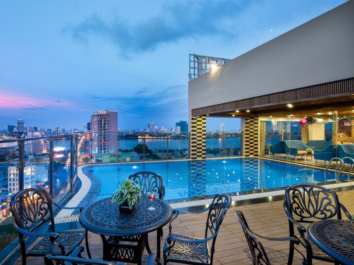 Tiện ích tại khách sạn bao gồm hồ bơi ngoài trời, nhà hàng, quầy bar tầng thượng với không gian thoáng đãng, cùng bãi đỗ xe miễn phí dành cho khách lưu trú. Đặc biệt, vị trí chỉ cách phố đi bộ Bạch Đằng vài bước chân giúp du khách dễ dàng khám phá nhịp sống náo nhiệt và những điểm đến nổi tiếng của thành phố. Khoảng giá của khách sạn rơi vào 1.100.000 – 2.450.000 VNĐ/đêm.